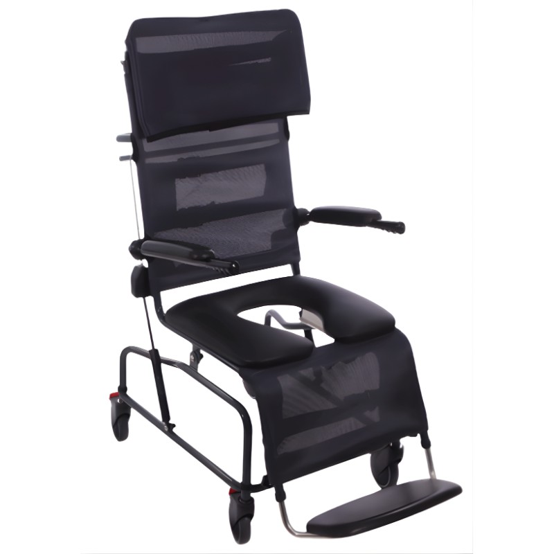 Son dossier inclinable jusqu’à 45° directement sur place permet d’ajuster la position de l’utilisateur sans transfert supplémentaire. Le mécanisme d’inclinaison manuel, avec commande à tige solide, est simple à utiliser et nécessite très peu d’entretien.