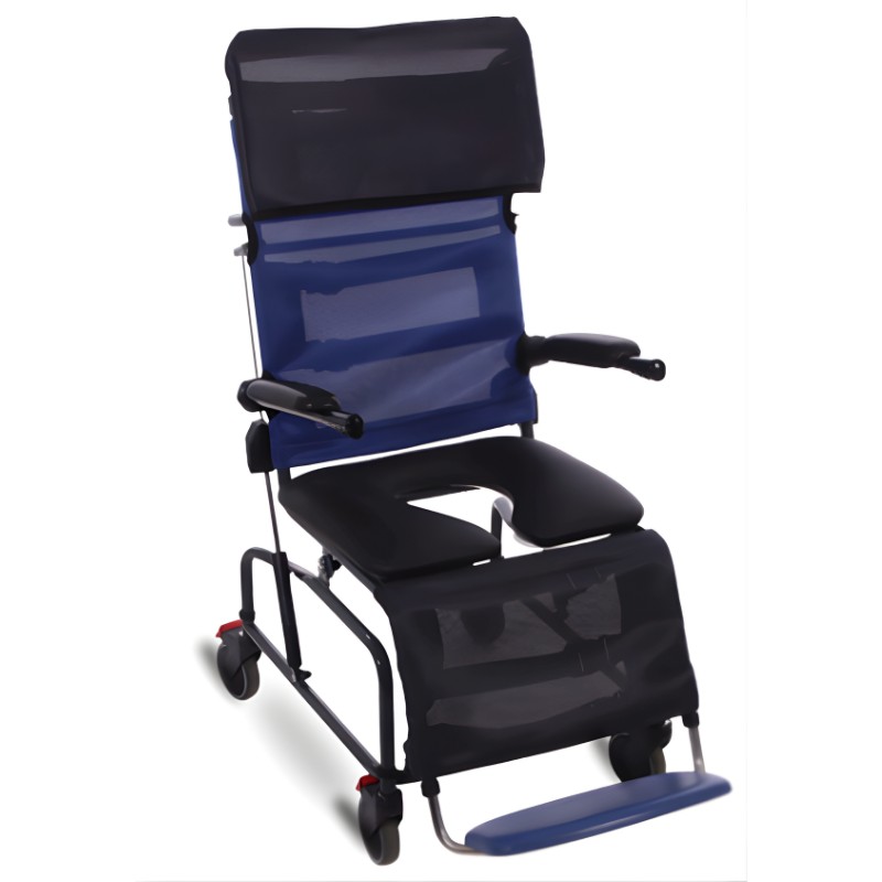 Conçu pour un usage intensif, le Marée dispose d’un cadre principal en acier robuste, de roulettes freinées pour plus de sécurité en milieu humide et d’accoudoirs réglables facilitant l’accès. Des coussins latéraux rembourrés en option apportent un soutien et une sécurité supplémentaires pour l’utilisateur.