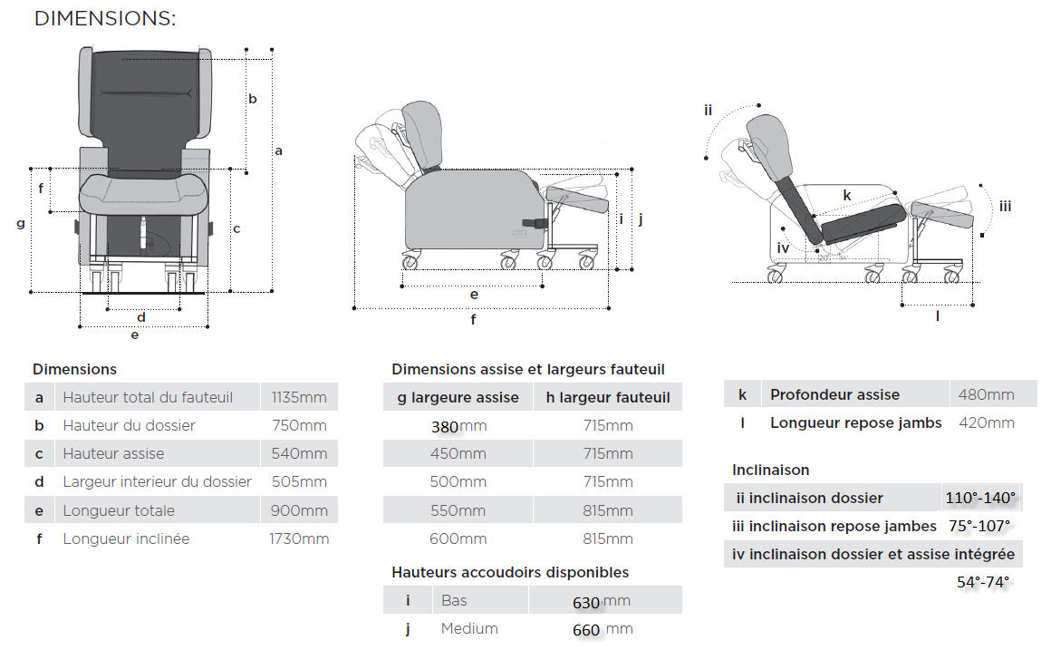 Disponible en 03 largeurs d'assise 38-45-50 cm