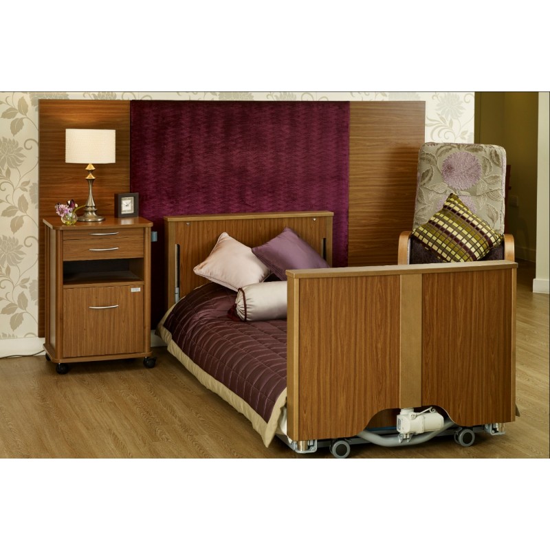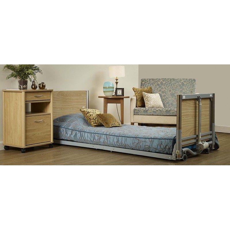 Le lit FL 2, spécialement conçu pour les unités Alzheimer et protégées, offre une hauteur réglable de 7 à 81 centimètres, garantissant un niveau de sécurité optimal et s'adaptant aux besoins individuels des résidents. Sa structure solide et ses barrières latérales ajustables assurent un environnement de repos sécurisé.