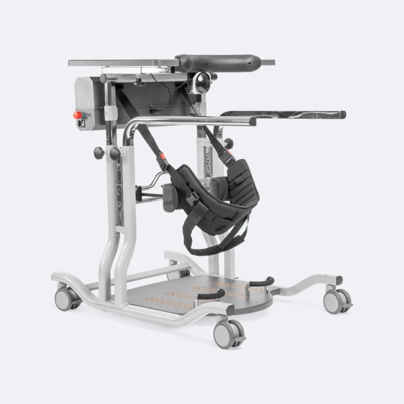Le VISION est un verticalisateur avec traction électrique. Actionnée avec une commande sans fil, le verticalisateur électrique lui permet d'être verticaliser sans effort pour le soignant.